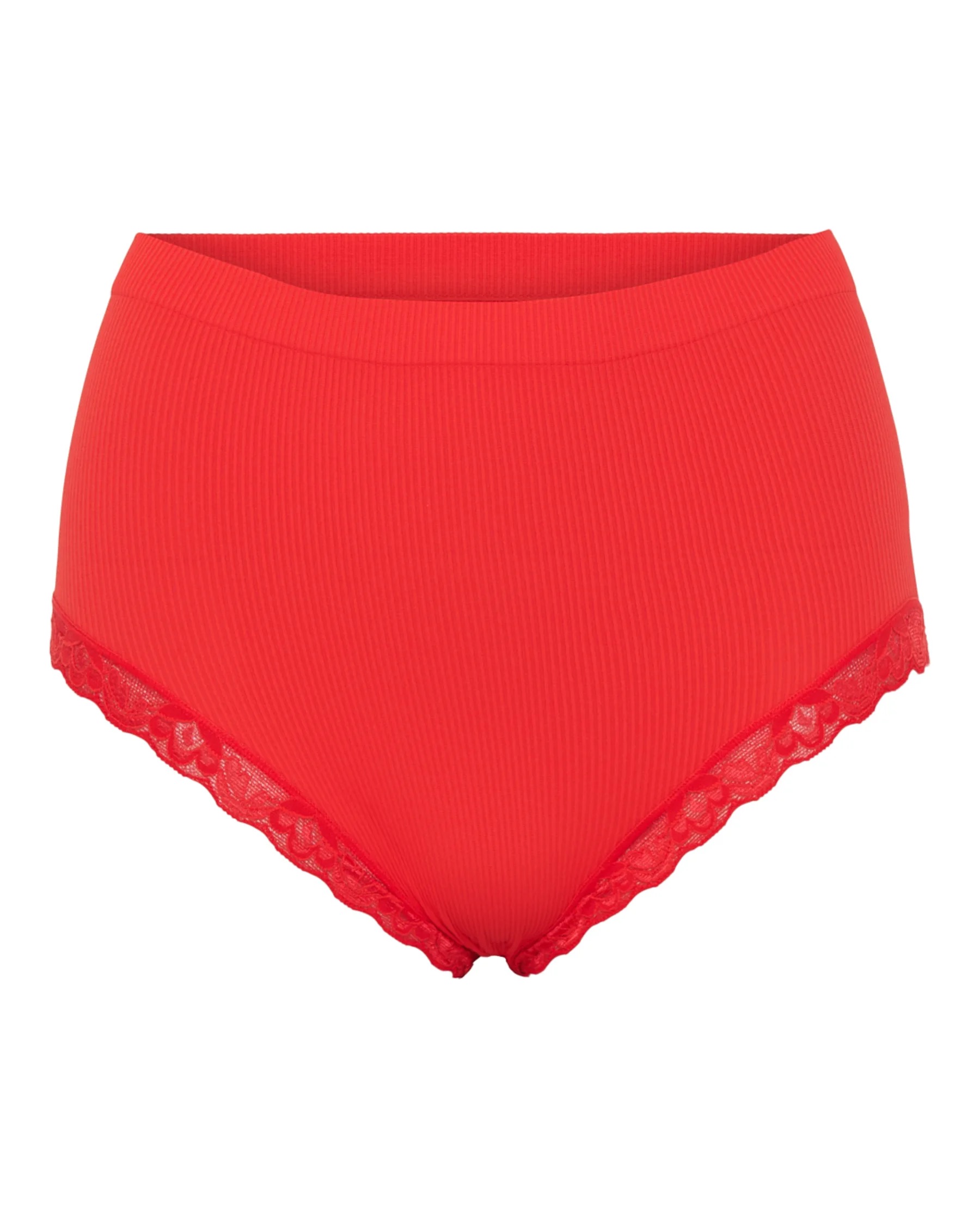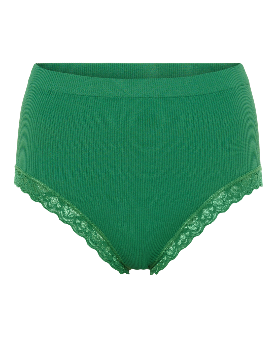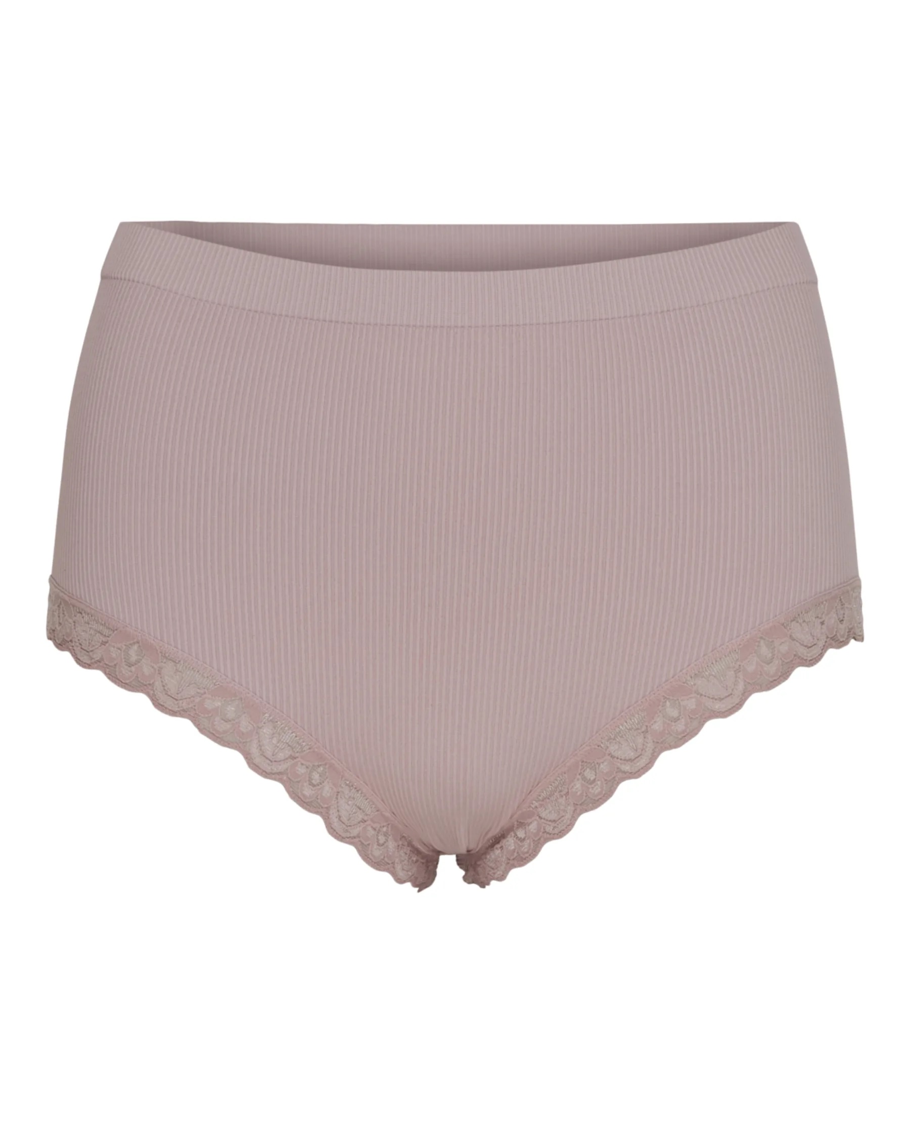 Lækre bløde underbukser fra Tim & Simonsen. Dette er deres Feline Rib Panties som er en højtaljet model. Lavet i en blød og elastisk rib kvalitet med blondekant og med massere af stræk.