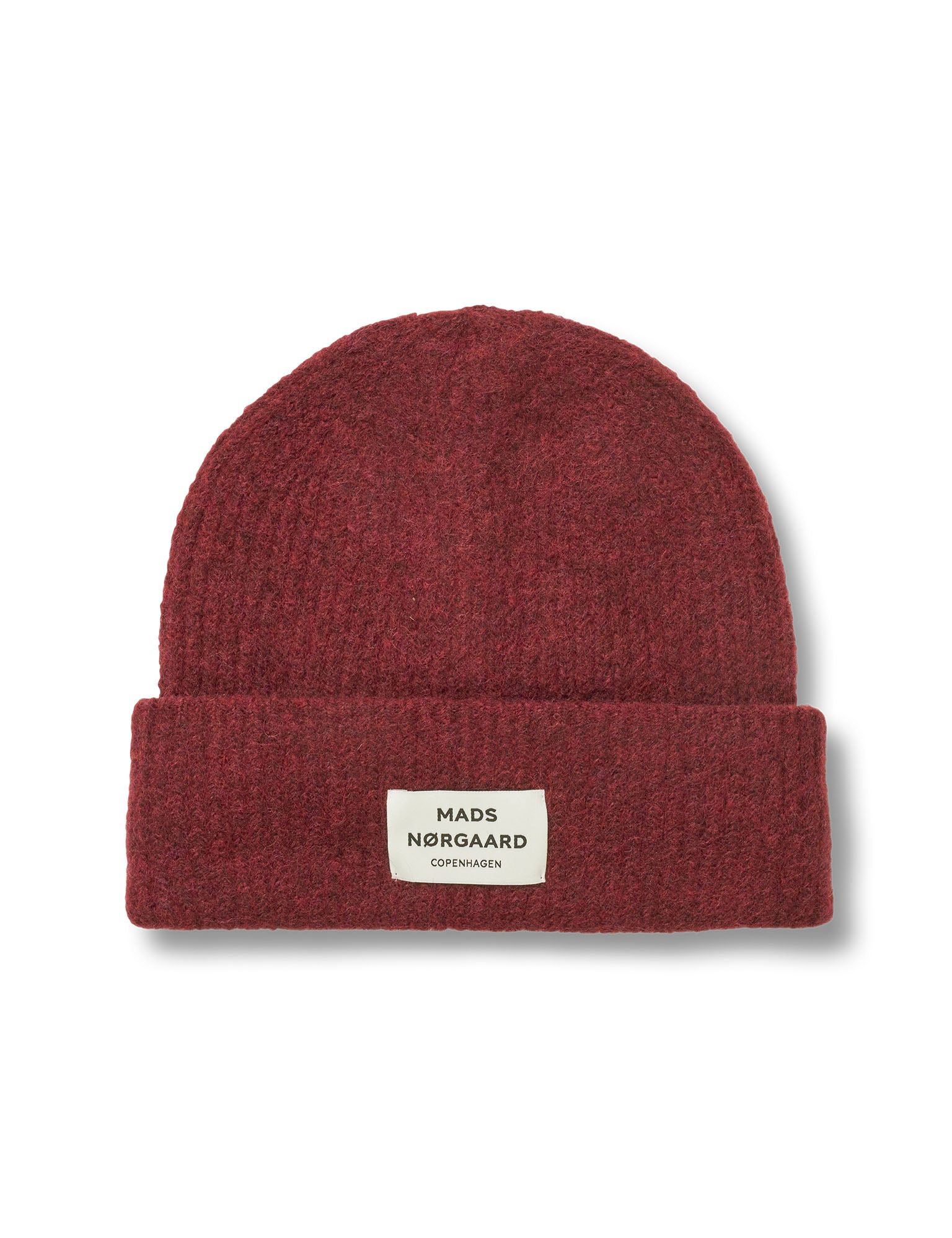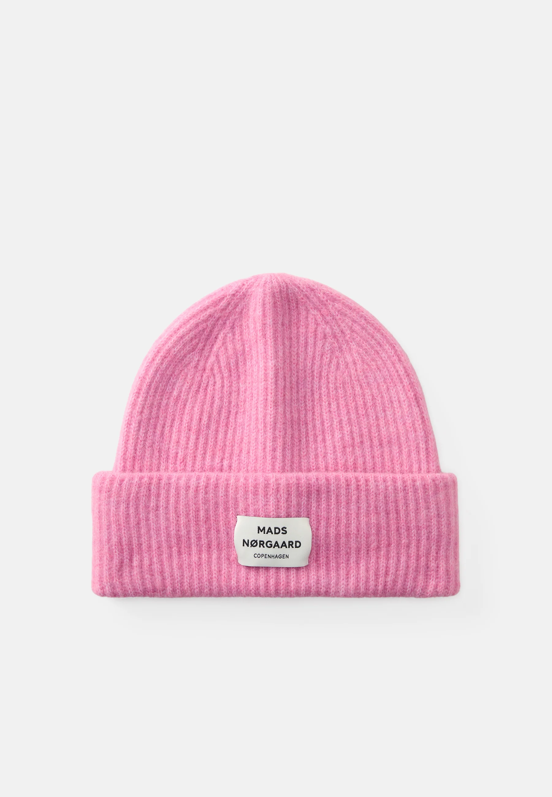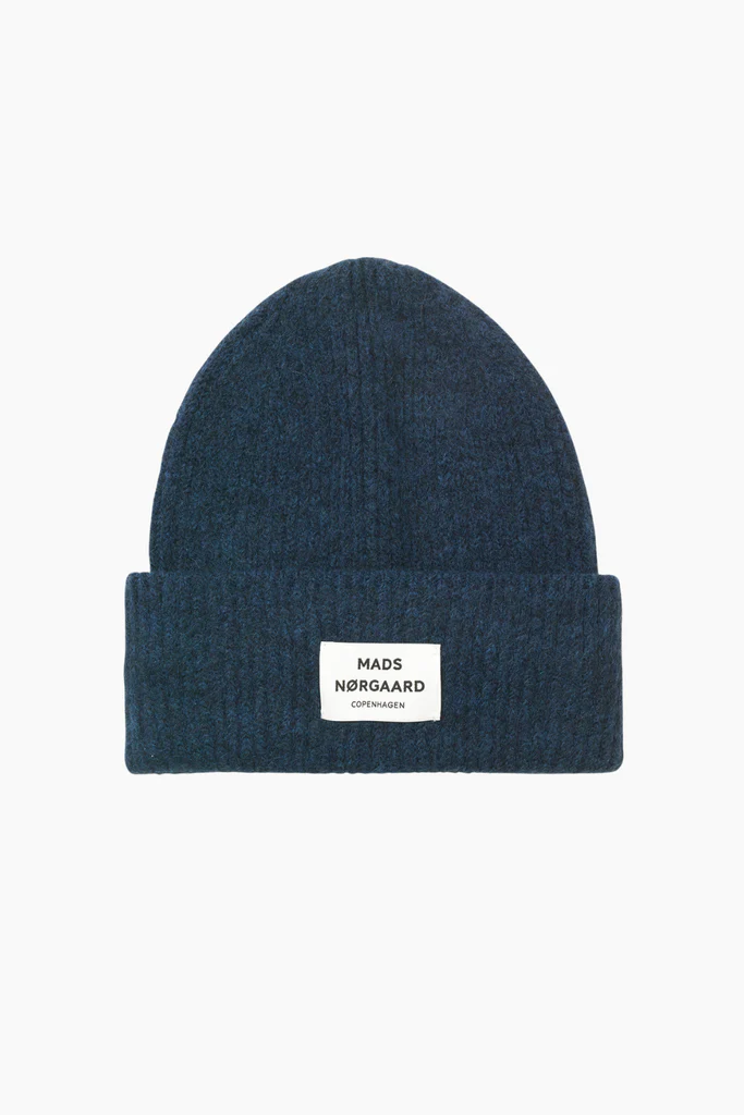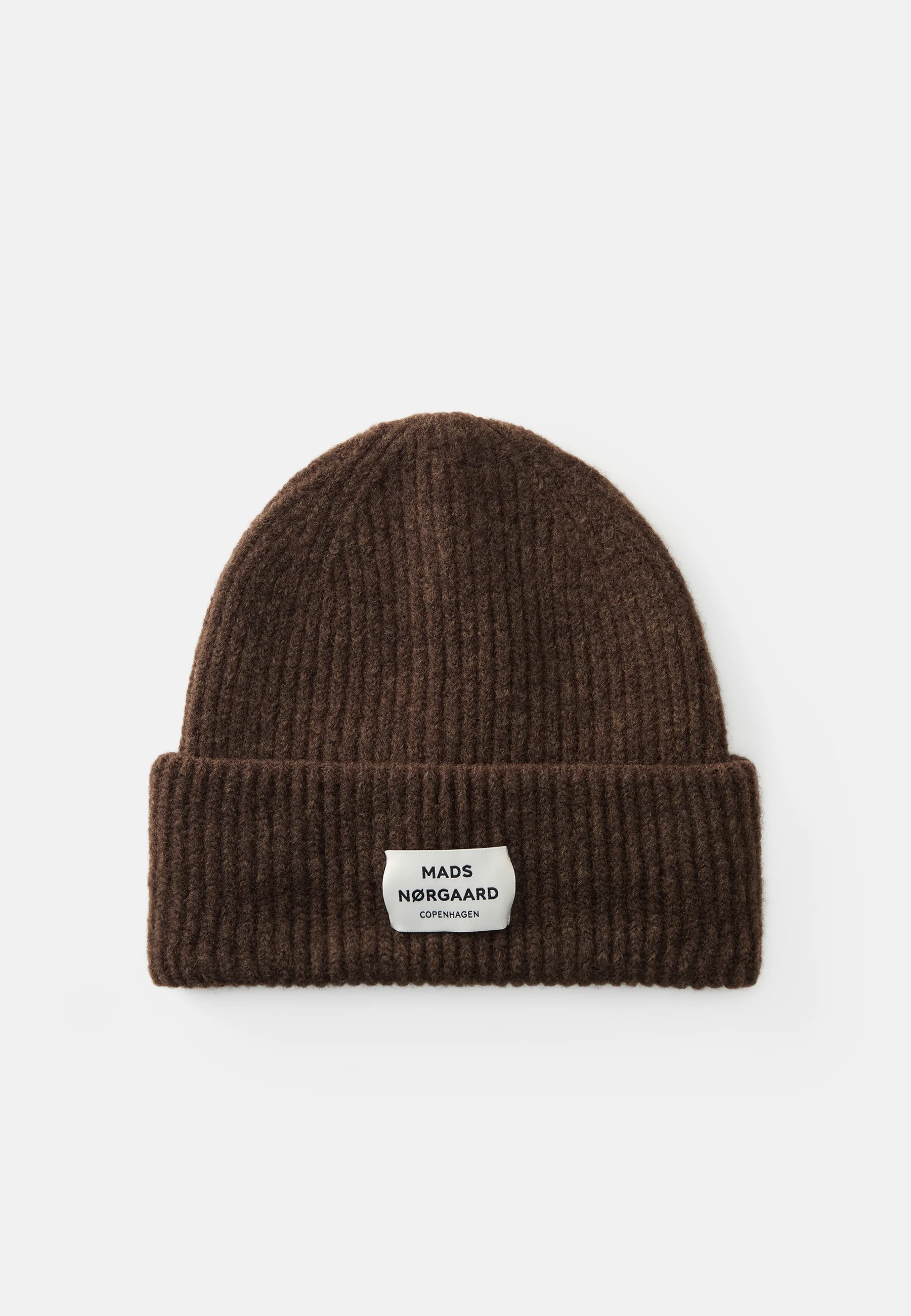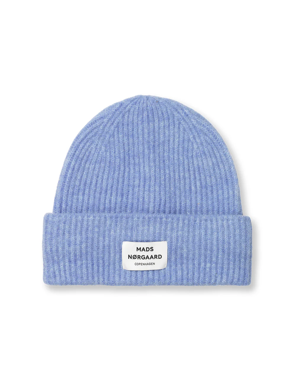 Blød, ribstrikket hue med bredt dobbelt-rib og påsyet logolabel.
