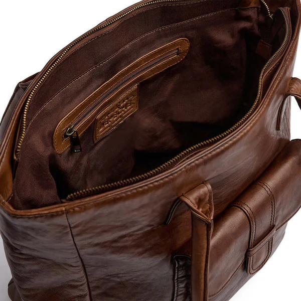 Tasken lukkes med lynlås i toppen og har en rummelig indretning, der gør den ideel til både arbejde og hverdagsbrug. Indvendigt finder du en lille lynlåslomme samt to åbne mobillommer, så du nemt kan holde styr på dine vigtigste ejendele.