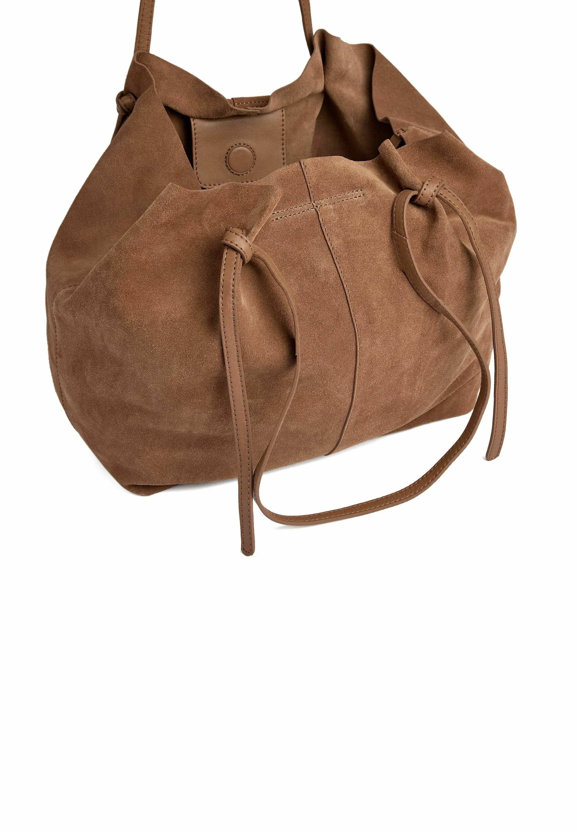 Lækker ruskindsshopper i cool design med justerbare stropper. Det anbefales at imprægnere tasken inden brug. Tasken er desuden udstyret med en smart lukning bestående af en trykknap og en magnetknap øverst, som sikrer en sikker og nem åbning og lukning, så dine ejendele altid er trygt opbevaret.