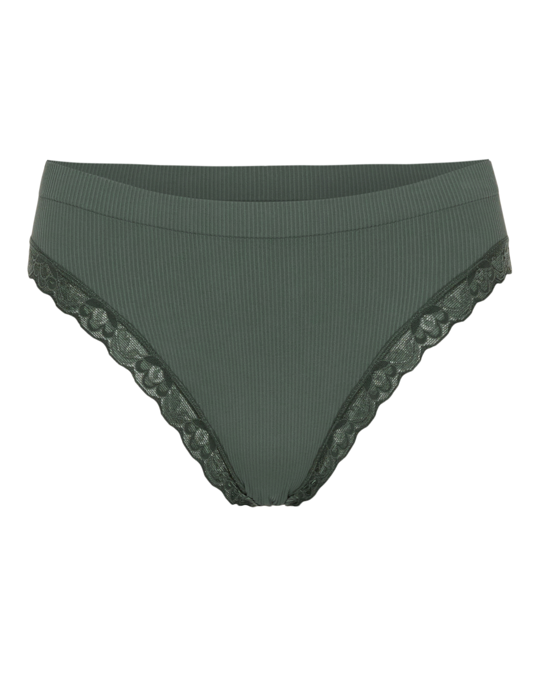 Feline rib panties er bløde mikrofiber-trusser i ribkvalitet med elegante blondekanter.