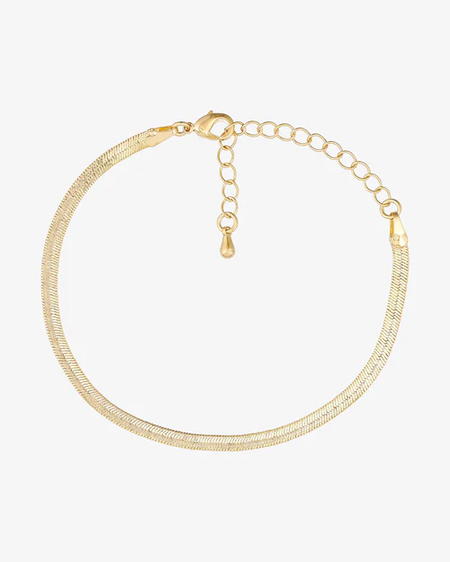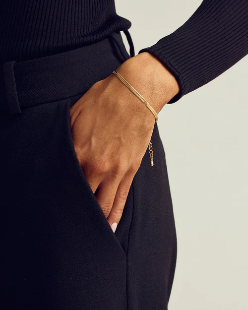 Fin og feminint guldbelagt armbånd i flad slangekæde til et elegant og stilfuldt look.