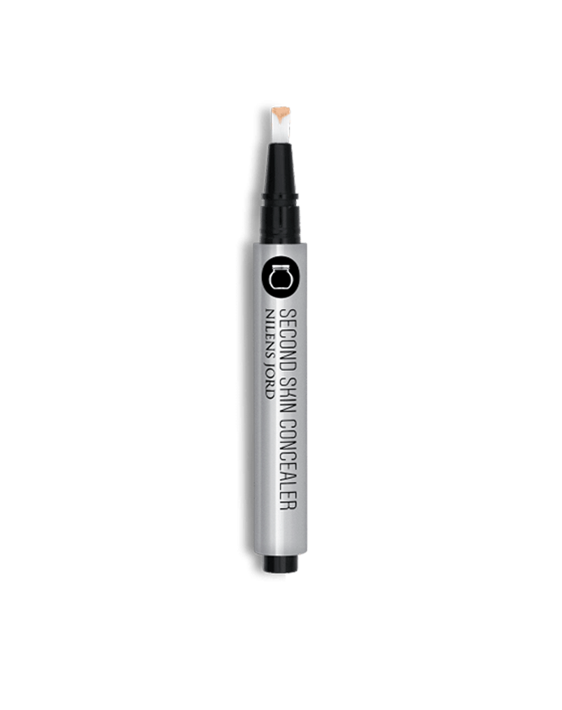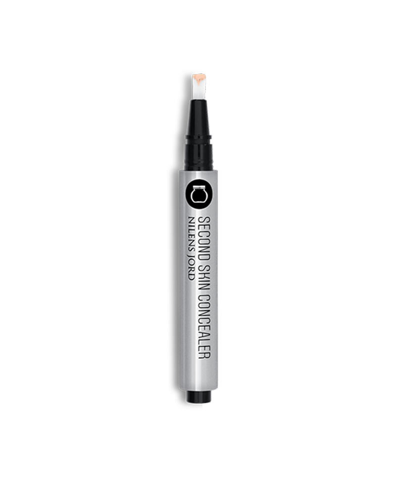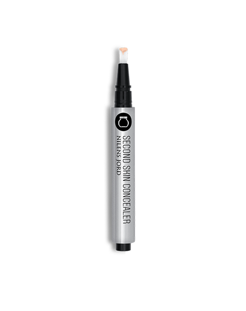 Second Skin Concealer er en dækkende, lysreflekterende og cremet concealer. Formlen indeholder lysflekterende pigmenter, som giver din hud en strålende glans. Concealeren indeholder silikone, der forbedrer og blødgør huden. Brug concealerpennen til at lysne mørke rande under øjnene eller under brynet, øverst på kindbenet og ved amorbuen. Prøv også at påføre den under øjenskygge som primer for at øge farveintensiteten. Konsistensen er cremet og let, og det gør concealeren nem at arbejde med og tone ud på huden uden synlige overgange for et meget naturligt resultat. Anvend Second Skin Concealer alene eller sammen med Nilens Jord Second Skin Serum Foundation.