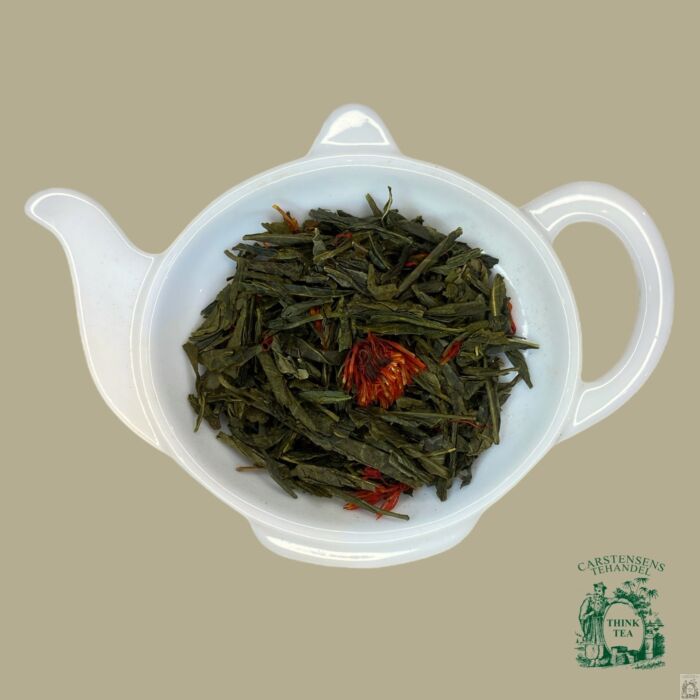 Ingredienser: Grøn te, jordbær (1 %), jordbærblade (1 %), saflor og aroma.