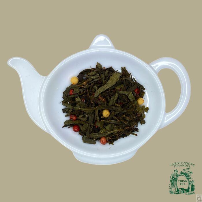 Ingrediens: Grøn te, kakao, aroma, rosa peber, hvid chokolade (fuldkornshvedemel, hvedestivelse, hvedekim, sukker, salt), kakaosmør, sødmælkspulver, emulgator soyalecitin, vanille aroma og chili (1 %).