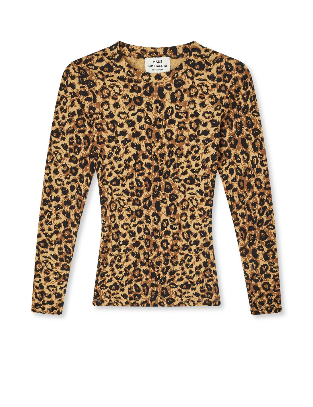 T-shirten fra Mads Nørgaard er en langærmet tætsiddende trøje fremstillet i et stretchy og ribbet materiale. Den langærmet t-shirt er designet med moderne et leopard print.