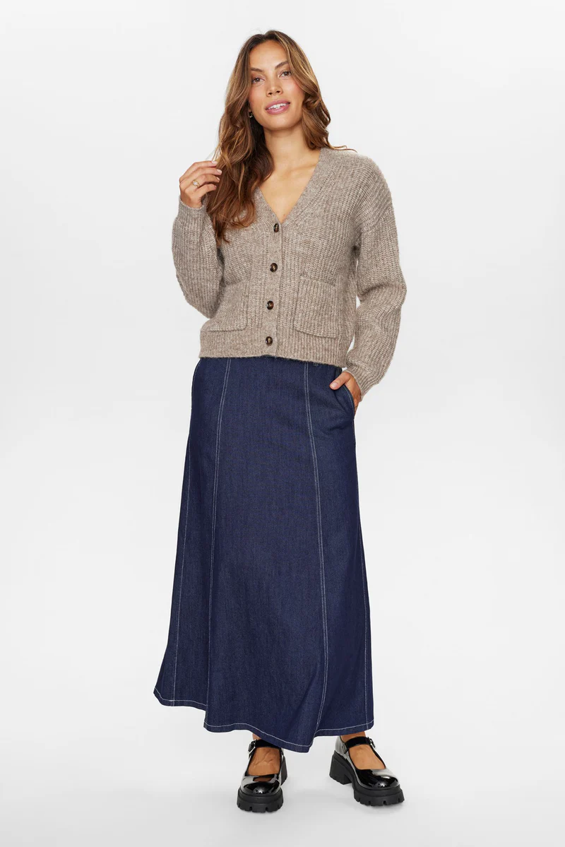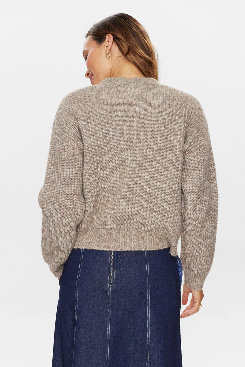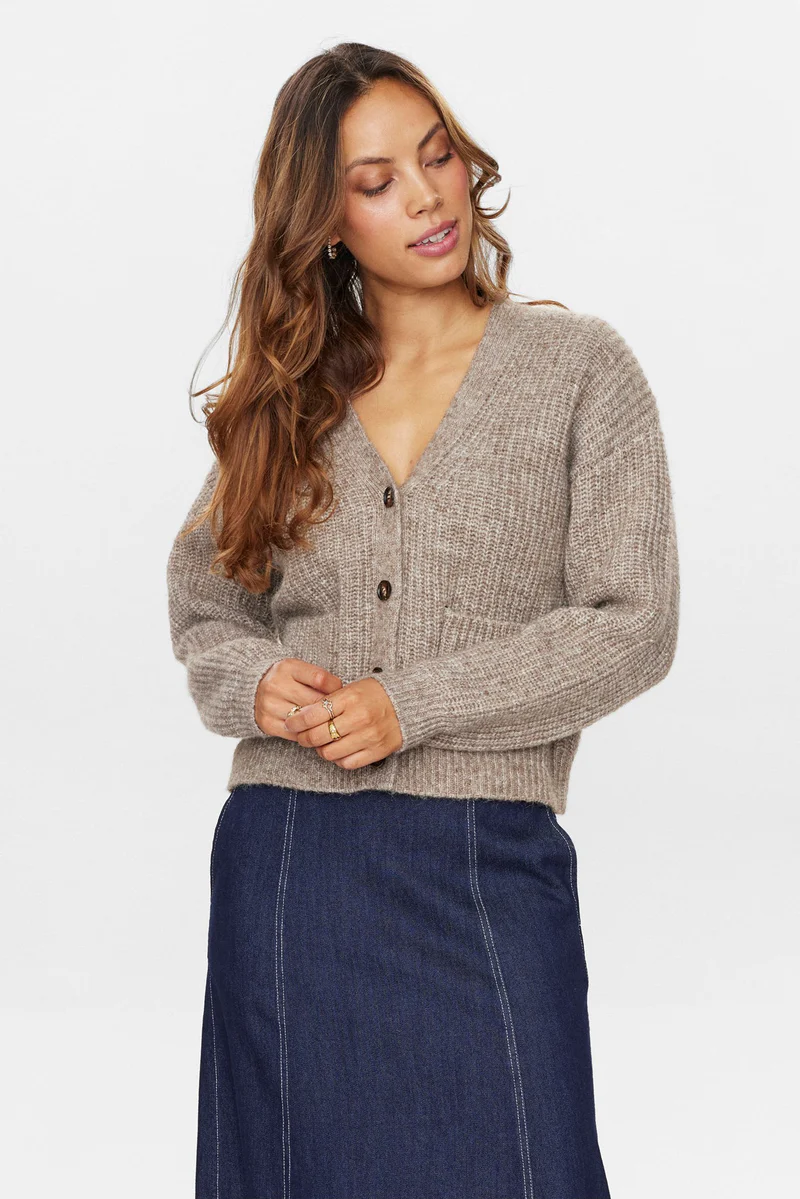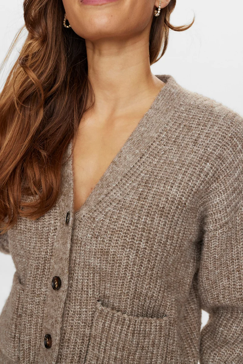 En flot og utrolig blød strik til de kølige dage. Den er lavet i patentstrik, hvilket giver den et cool og attraktivt udseende med det melerede garn. Den passer flot til både nederdele og jeans og ser fantastisk ud med et par rå støvler eller sneakers - en cardigan, som du vil blive meget glad for. Materialet indeholder blød alpaka samt uld og genanvendt polyester.